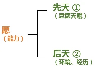 能力和意愿都跟天赋有很大的关系,所以继续细分。这里,将能力和意愿分为先天和后天的部分。
