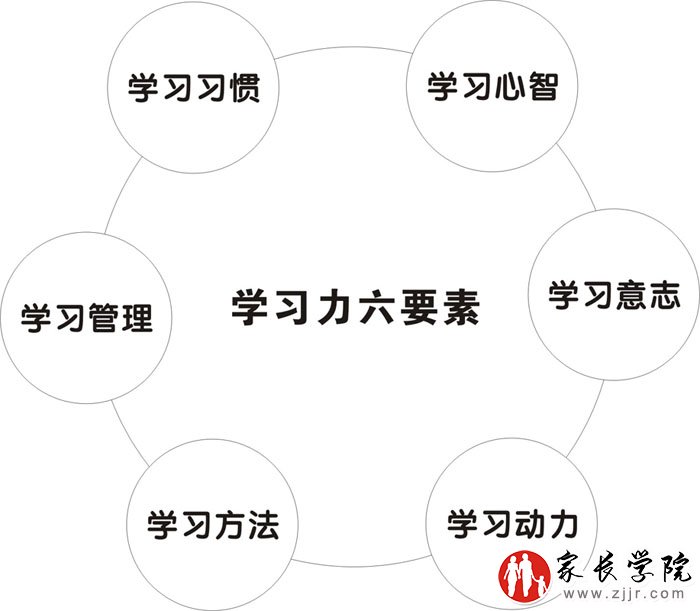 因研究视角的不同,对学习力的构成要素有不同的说法,较为典型的有“四要素说”、“六要素说”、“七要素说”和“综合体说”。“六要素说”是我在十多年的学习力教育研究实践中提出来的,是以实践为基础的学习力教育学说,即将“学习力”分解成可以实践训练的六个要素:学习习惯、学习方法、学习管理、学习心智、学习意志、学习动力,而这六个要素既相对独立,又互相关联、互相影响、互相促进,每个要素的提升都会有效提升学习力。这六个要素又称之为六个维度:
